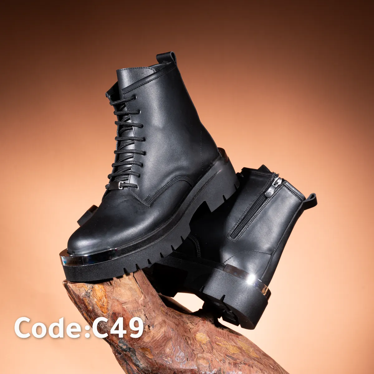 هاف بوت جلد طبيعي بقري سوستة مستوردة تلبيس مظبوط